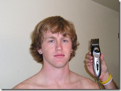 College guys cutting hair